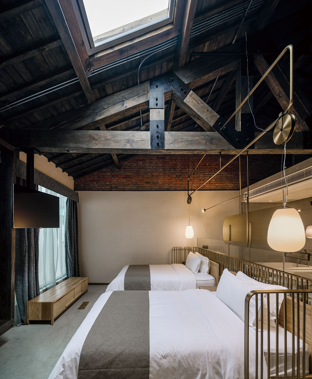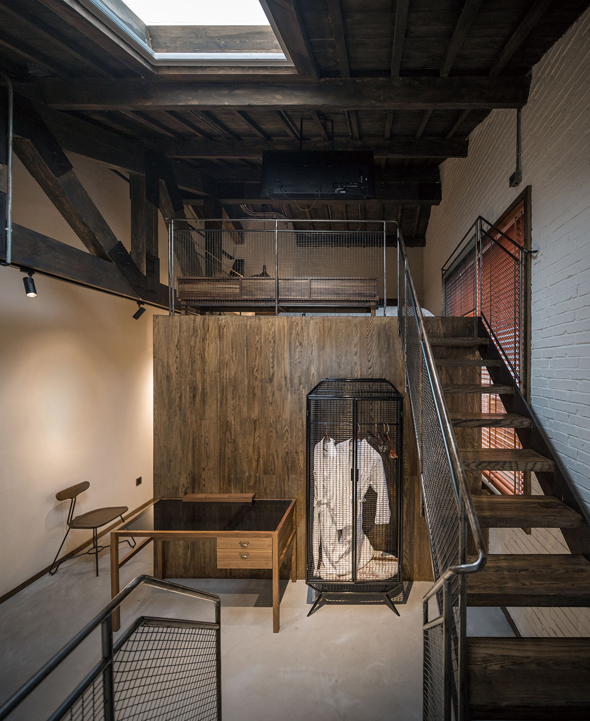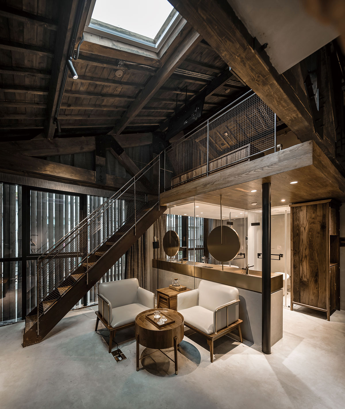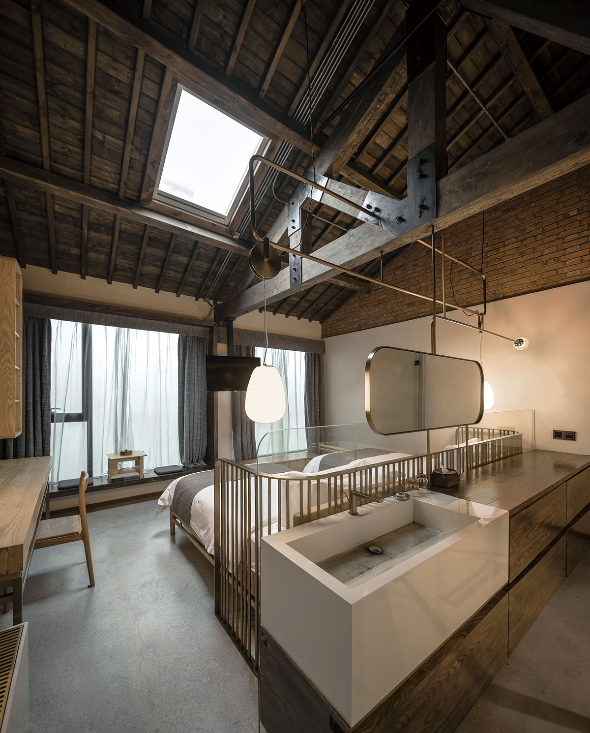 渝舍印象由兩棟樓組成,設(shè)計過程從整合的角度梳理了文化、自然、建筑之間的關(guān)系。以入口處以折疊巡回的青磚引入,為空間的公共與私密提供了過渡。參考北方的四合院和上海小院的特點,設(shè)計師大刀闊斧,在寸土寸金的上海市中心辟出一處院落,解決了建筑間的孤立狀態(tài),使客房、前廳大堂和咖啡廳視覺上遙相呼應(yīng),院落的引入集中體現(xiàn)了傳統(tǒng)建筑的造園思想。大片窗戶和鋼板組成干干凈凈的冷色基調(diào),與透出的暖黃光形成對比,正如渝舍印象的經(jīng)營模式:用酒店式的管理方法,民宿的人文情懷去經(jīng)營。這里有書籍、音樂、咖啡和茶,懶懶地坐在舒服的沙發(fā)上,發(fā)呆、看書、聊天,坐上一下午。